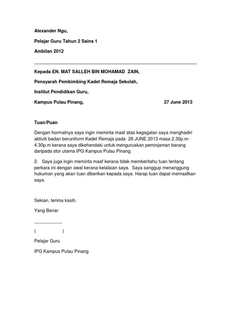 Mohon maaf surat rasmi memohon maaf atas . ١٣ ربيع الأول ١٤٤٣ هـ. Sebab utama saya tidak menghadiri kem ialah . Download contoh surat rasmi permohonan maaf contoh tiga.